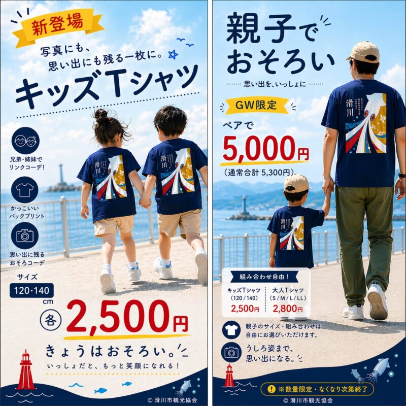 滑川市観光協会オリジナルTシャツに、